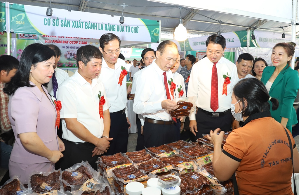 Phát biểu tại lễ khai trương, Phó Chủ tịch UBND tỉnh Lê Đức Giang nhiệt liệt biểu dương các đơn vị, doanh nghiệp, địa phương và bà con nông dân, đặc biệt là 22 doanh nghiệp của 16 tỉnh đã quan tâm, góp mặt, tham gia tại buổi lễ khai trương trưng bày, giới thiệu sản phẩm nông sản, thực phẩm an toàn năm 2023.