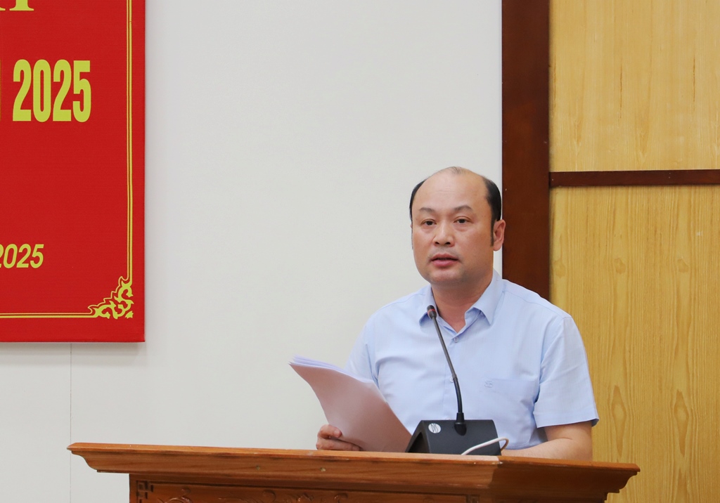 | Giám đốc Sở Nông nghiệp và Môi trường Cao Văn Cường báo cáo tại hội nghị. |