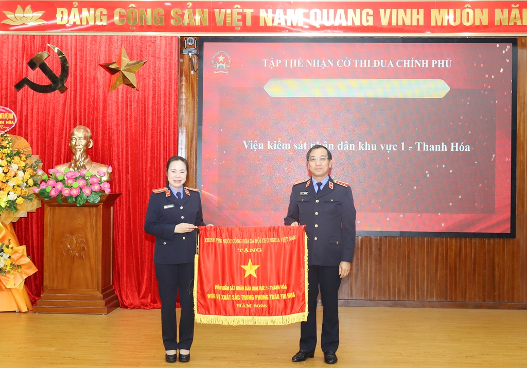 Nhân dịp này, thừa ủy quyền của Thủ tướng Chính phủ, đồng chí Hồ Đức Anh, Phó Bí thư Thường trực Đảng ủy, Phó Viện trưởng VKSND tối cao đã trao Cờ thi đua của Chính phủ tặng VKSND khu vực 1. Thừa ủy quyền của Viện trưởng VKSND tối cao, đồng chí Nguyễn Hồng Phong, Phó Bí thư Thường trực Tỉnh ủy đã trao Cờ thi đua của VKSND tối cao tặng VKSND tỉnh Thanh Hóa. Bốn đơn vị thuộc VKSND tỉnh nhận Cờ thi đua của VKSND tối cao.