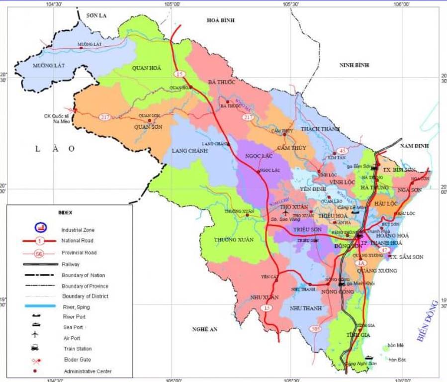- Phía Bắc: giáp 3 tỉnh, gồm: Sơn La, Hoà Bình, Ninh Bình với đường ranh giới dài 175km.