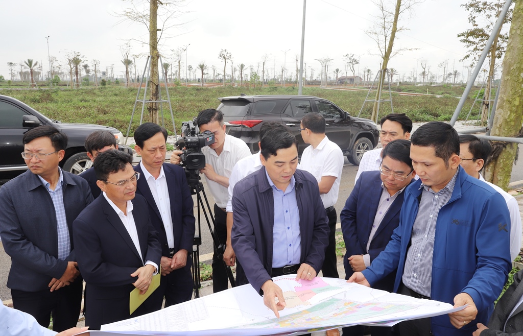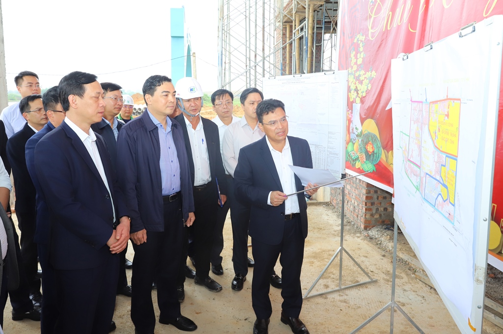 Chủ tịch UBND tỉnh cùng đoàn công tác nghe báo cáo tình hình thực hiện khu tái định cư cho Dự án đầu tư xây dựng và khai thác hạ tầng khu công nghiệp Lam Sơn – Sao Vàng.