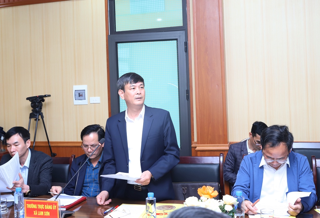 Đại diện lãnh đạo các xã báo cáo tại buổi làm việc.