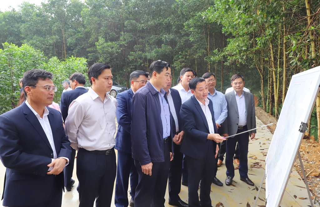 Chủ tịch UBND tỉnh Nguyễn Hoài Anh cùng đoàn công tác nghe báo cáo quy hoạch Dự án Khu xử lý chất thải rắn tập trung cấp vùng tại xã Sao Vàng.