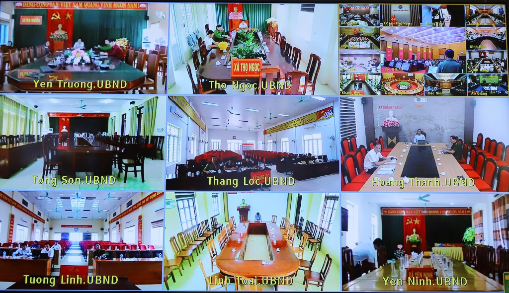 Toàn cảnh hội nghị tại các điểm cầu trực tuyến tại các xã, phường trên địa bàn tỉnh.