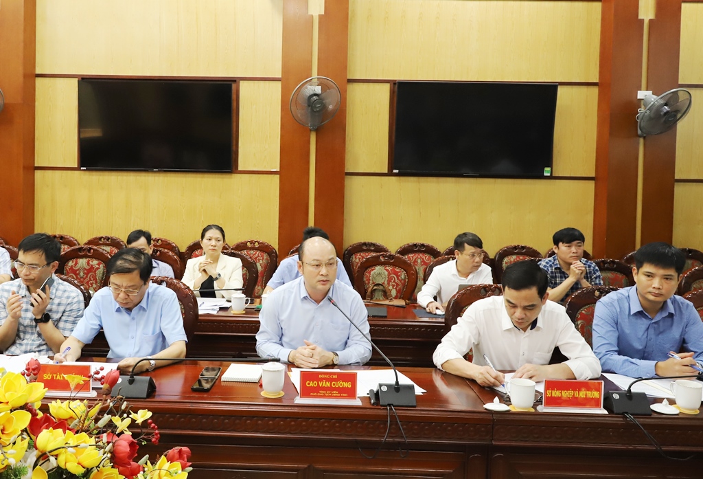 | Phó Chủ tịch UBND tỉnh Cao Văn Cường phát biểu tại buổi làm việc. |
