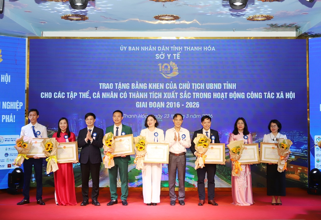Chiều ngày 23/3/2026, Sở Y tế Thanh Hóa tổ chức Lễ kỷ niệm 10 năm Ngày Công tác xã hội Việt Nam (25/3/2016 - 25/3/2026) với chủ đề “Công tác xã hội Việt Nam - Sáng tạo, chuyên nghiệp, vươn mình đột phá”.