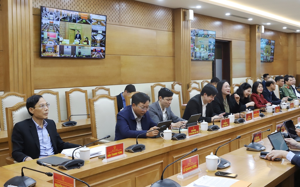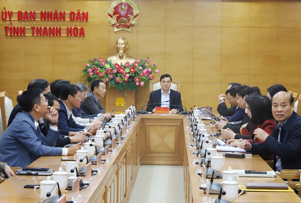 Dự phiên họp tại điểm cầu Trụ sở UBND tỉnh Thanh Hóa có các đồng chí: Nguyễn Hoài Anh, Ủy viên Trung ương Đảng, Phó Bí thư Tỉnh ủy, Chủ tịch UBND tỉnh; Lê Quang Hùng, Ủy viên BTV Tỉnh ủy, Phó Chủ tịch UBND tỉnh; Đầu Thanh Tùng, Tỉnh ủy viên, Phó Chủ tịch UBND tỉnh; lãnh đạo các sở, ngành, đơn vị liên quan.