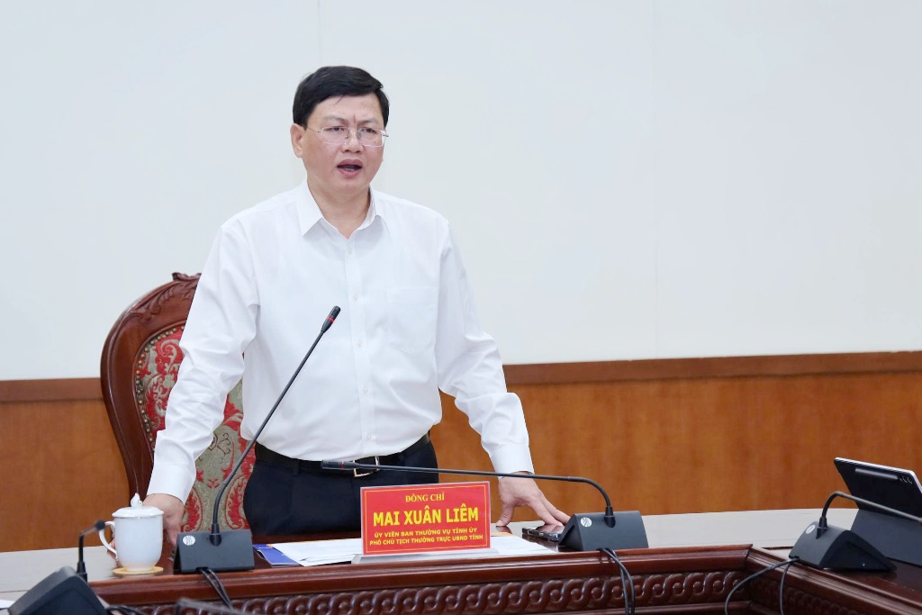 | Phó Chủ tịch Thường trực UBND tỉnh Mai Xuân Liêm phát biểu kết luận hội nghị. |