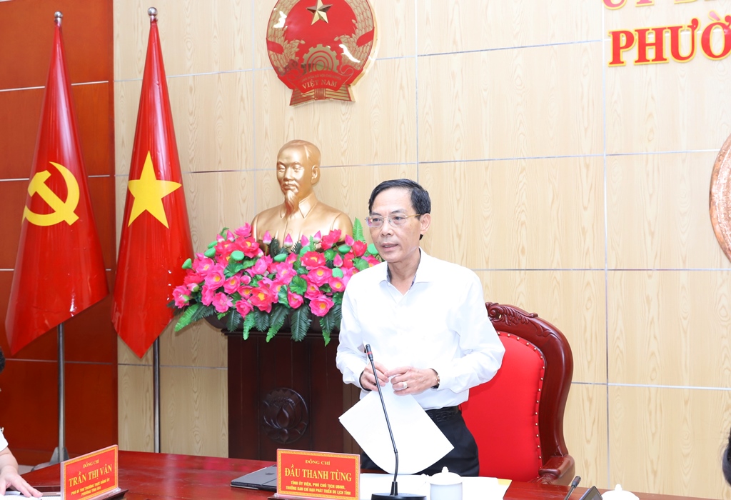 | Phó Chủ tịch UBND tỉnh Đầu Thanh Tùng phát biểu kết luận buổi làm việc. |