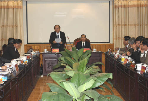 Tại buổi làm việc, được sự ủy quyền, đồng chí Vũ Đình Xinh, Tỉnh ủy viên, Giám đốc Sở TN&MT đã thay mặt UBND tỉnh báo cáo khái quát tình hình thực hiện công tác quản lý Nhà nước về TN&MT trên địa bàn tỉnh trong thời gian qua. Báo cáo nêu do được sự quan tâm chỉ đạo của Bộ TN&MT và UBND tỉnh, công tác quản lý nhà nước về TN&MT trên địa bàn tỉnh Thanh Hóa đã có chuyển biến tích cực và đạt được những kết quả cơ bản, góp phần thúc đẩy phát triển kinh tế - xã hội, giữ vững quốc phòng - an ninh của tỉnh. Việc quản lý, khai thác tài nguyên đất, khoáng sản, tài nguyên nước cơ bản được thực hiện theo quy hoạch, kế hoạch được duyệt, bảo đảm sử dụng hợp lý, tiết kiệm và hiệu quả; công tác bảo vệ môi trường được quan tâm chỉ đạo; giải quyết kịp thời các vấn đề bức xúc, phát sinh trong lĩnh vực TN&MT, góp phần quan trọng trong thu hút đầu tư.