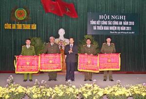 Tổng kết phong trào thi đua năm 2010, Công an tỉnh có 4 tập thể, 12 cá nhân được tặng thưởng Huân chương Bảo vệ Tổ quốc; 43 tập thể, 63 cá nhân được Chính phủ, Bộ Công an, Tỉnh ủy, UBND tỉnh tặng Bằng khen; 9 đơn vị được Bộ Công an, UBND tỉnh tặng cờ thi đua xuất sắc.