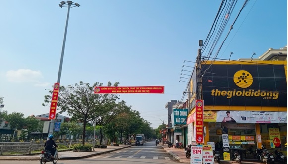 - Tuyên truyền bằng băng zon, khẩu hiệu, với 12 vị trí treo thuận tiện cho người dân quan sát.