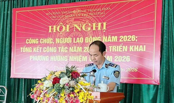 Tại Hội nghị, Chi cục Quản lý thị trường Thanh Hóa đã phát động phong trào thi đua năm 2026 với nhiều nội dung trọng tâm, thiết thực gắn với nhiệm vụ chính trị của đơn vị. Trong đó tập trung vào các nhiệm vụ như: nâng cao hiệu quả công tác kiểm tra, kiểm soát thị trường; tăng cường đấu tranh ngăn chặn, đẩy lùi tình trạng buôn lậu, gian lận thương mại, hàng giả, xâm phạm quyền sở hữu trí tuệ đến năm 2030 trên địa bàn tỉnh; đẩy mạnh công tác phòng, chống buôn lậu, gian lận thương mại và hàng giả trong hoạt động thương mại điện tử trên địa bàn tỉnh Thanh Hoá năm 2026; xây dựng đội ngũ công chức kỷ cương, liêm chính, chuyên nghiệp; đồng thời thực hiện hiệu quả các phong trào thi đua do Trung ương và địa phương phát động.