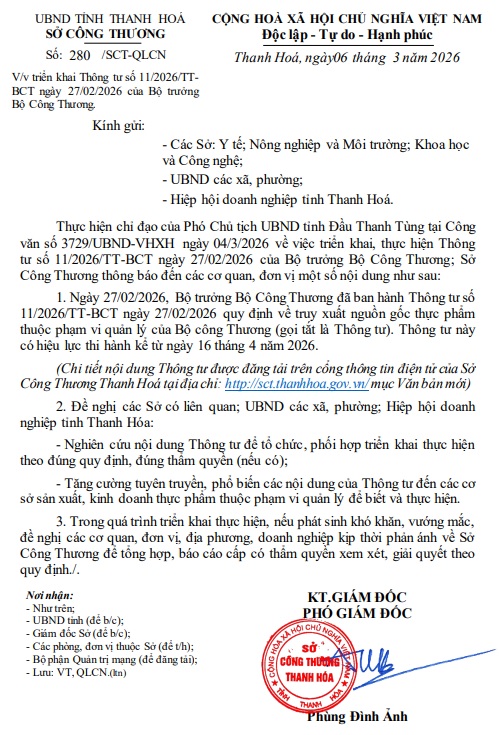 Triển khai Thông tư số 11/2026/TTBCT ngày 27/02/2026 của Bộ trưởng Bộ Công Thương.
